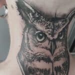 Tetování portrét sovy, zvíře na krk