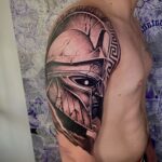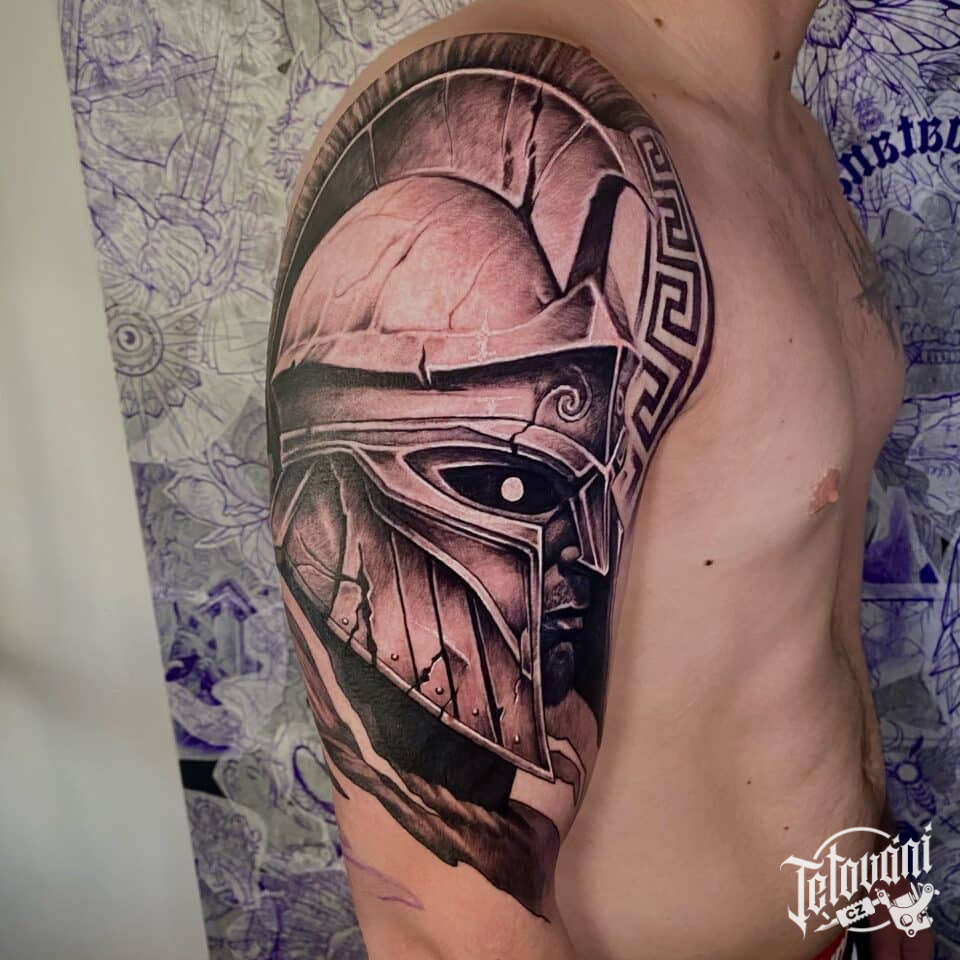Tetování portrét, sparťanský bojovník na rameni