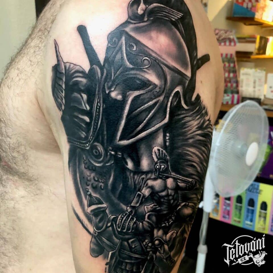 Tetování portrét, sparťanský bojovník, rytíř na rameno