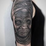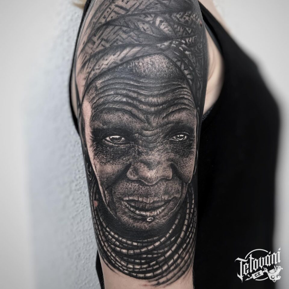 Tetování portrét staré africké ženy na rameni