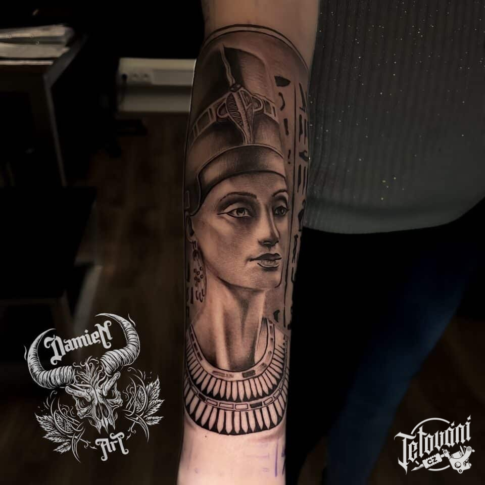 Tetování portrét Tutanchamon na předloktí