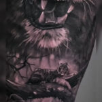 Tetování portrét, tygr na stehno