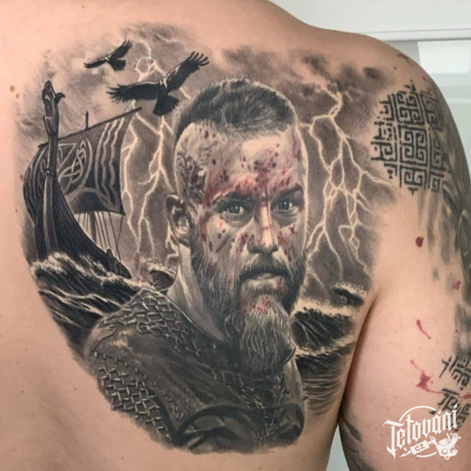 Tetování portrét Vikinga na lopatce