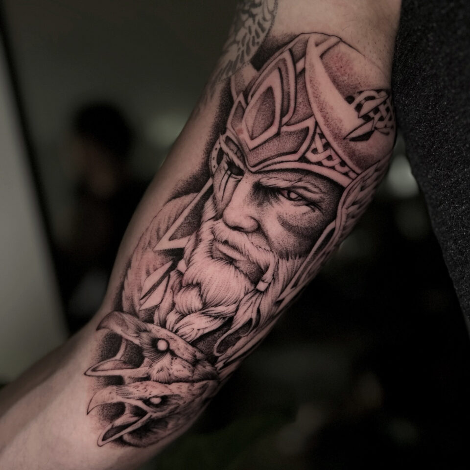 Tetování portrét vikinga na paži
