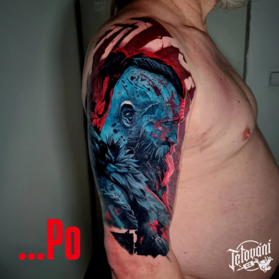 Tetování portrét vikinga na rameni