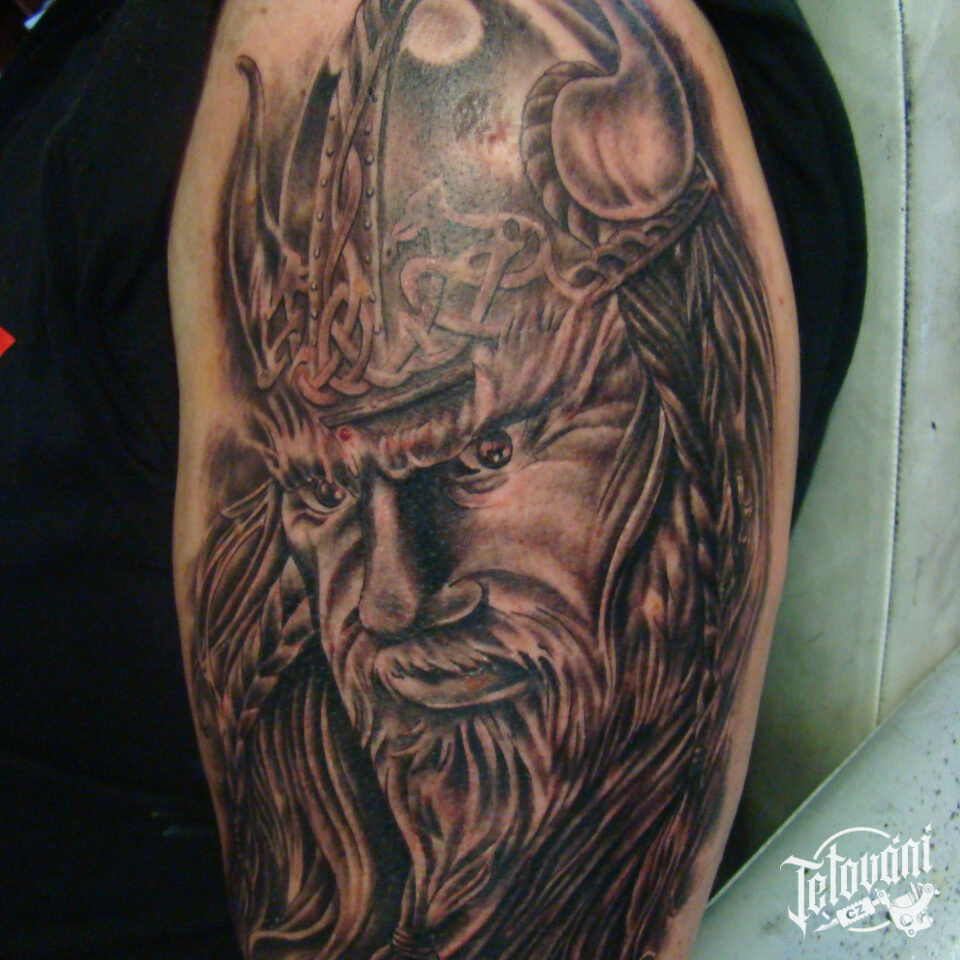 Tetování portrét vikinga na rameni