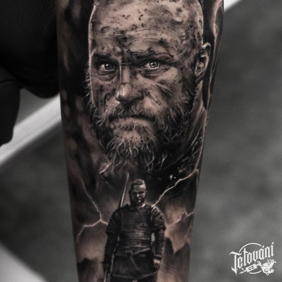 Tetování portrét, vikingský bojovník na předloktí