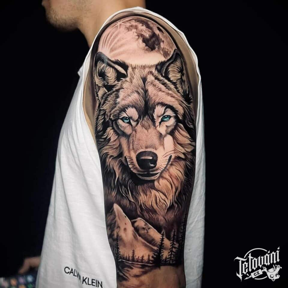 Tetování portrét vlk na paži
