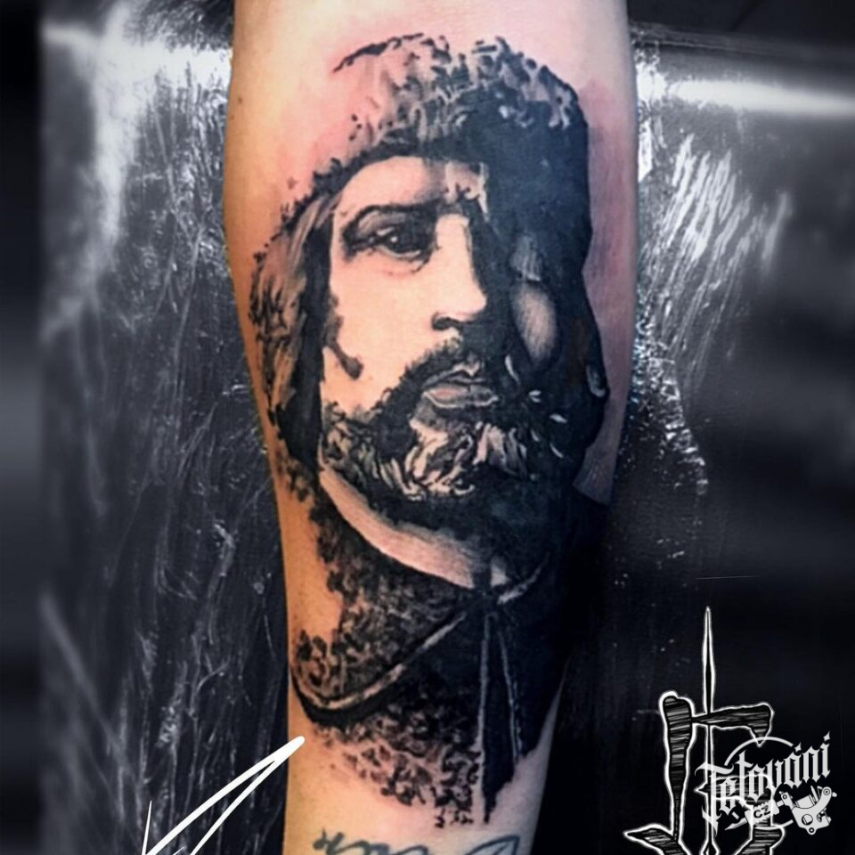 Tetování portrét, voják, bojovník na předloktí