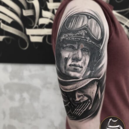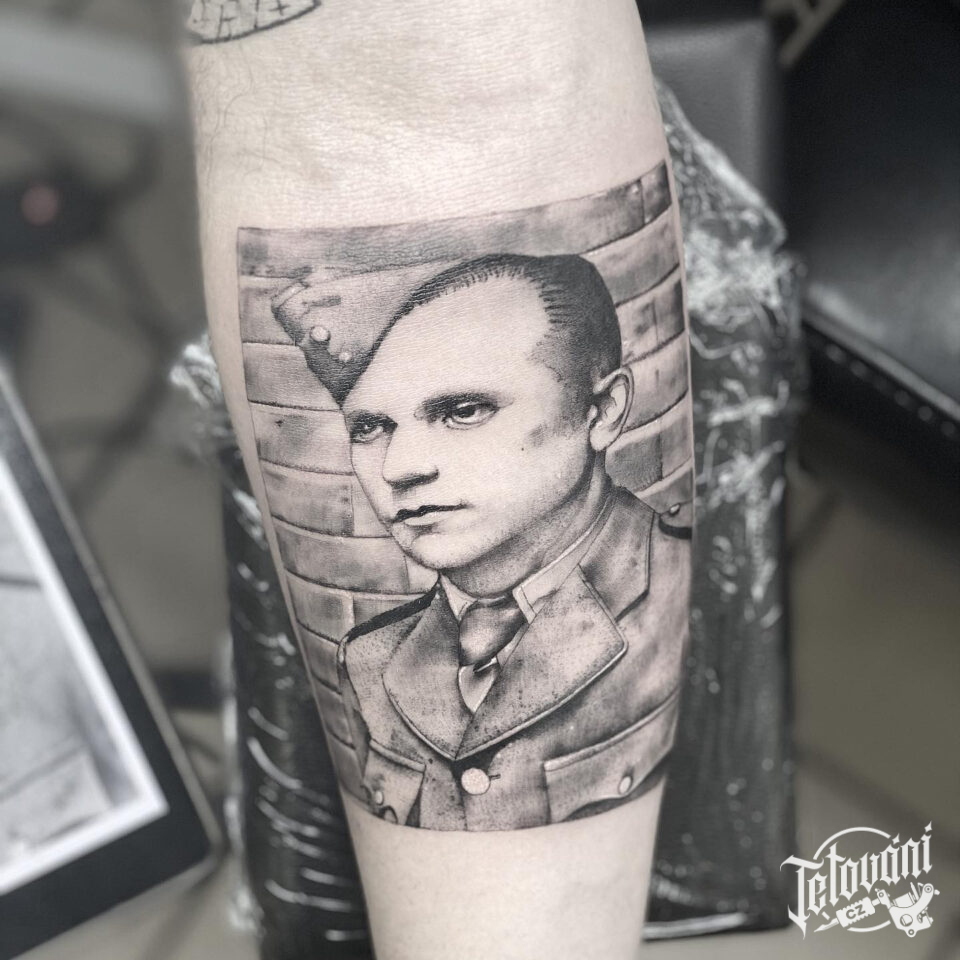 Tetování portrét vojáka na předloktí