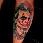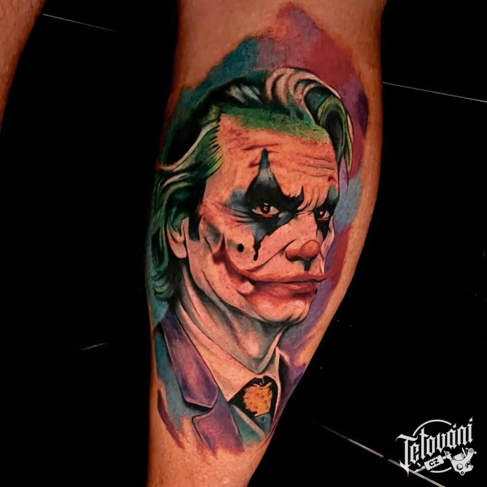 Tetování portrét z filmů a pohádek Joker na lýtko