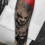 Tetování portrét z filmů a pohádek, Klaun a postavička na předloktí