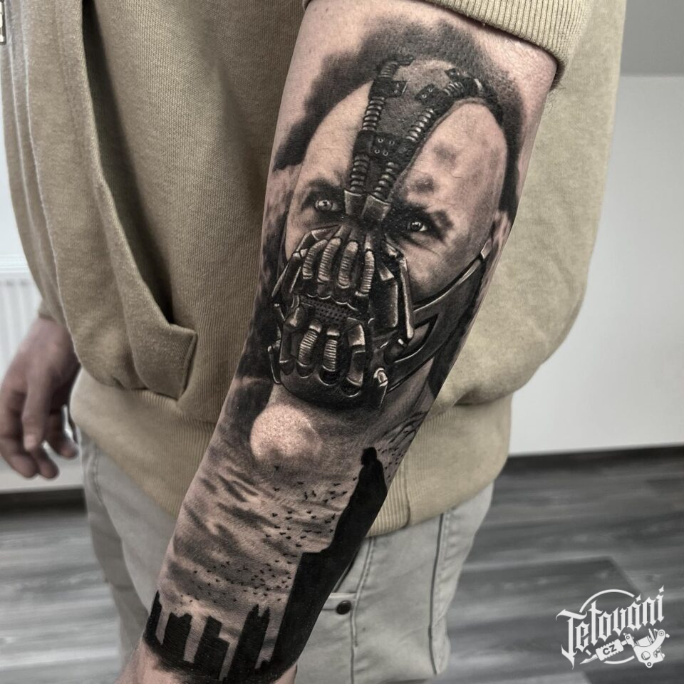 Tetování portrét z filmů a pohádek Mad Max, měsíc na předloktí
