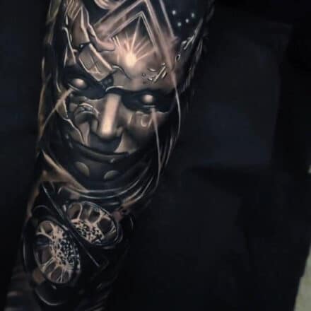 Tetování portrét z filmů a pohádek na boku stehna