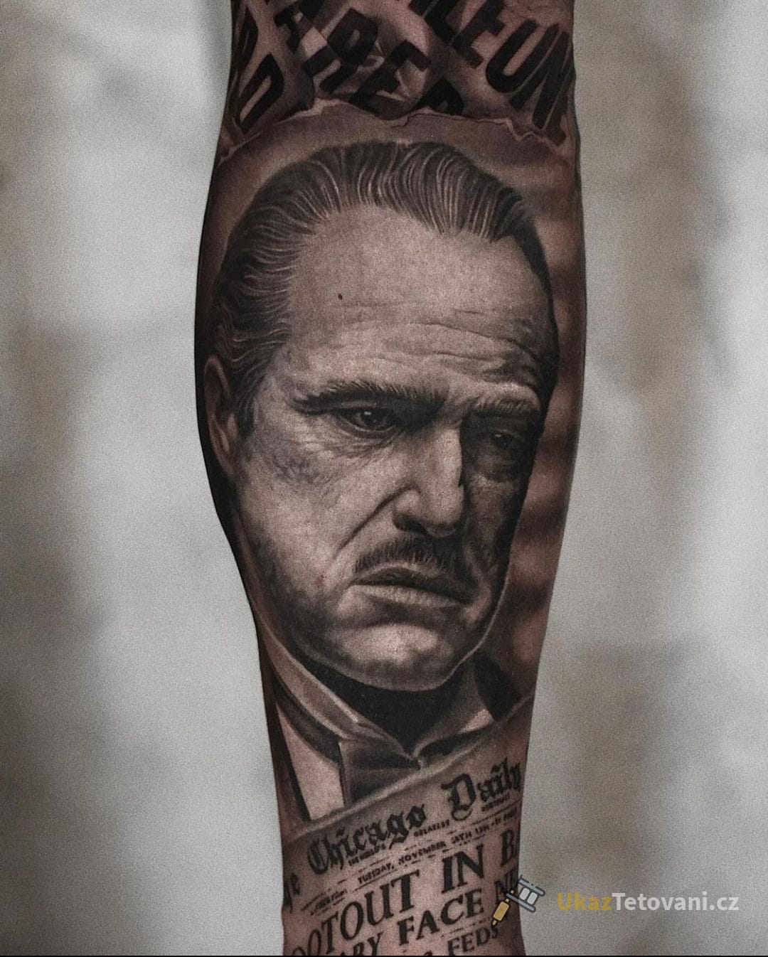 Tetování portrét z filmů a pohádek na lýtku