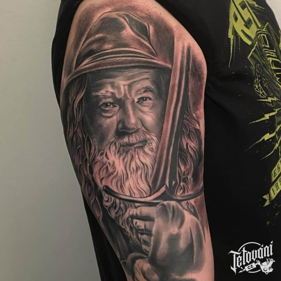 Tetování portrét z filmů a pohádek na rameni