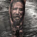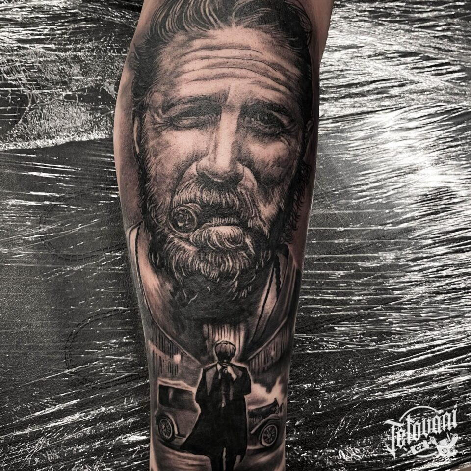 Tetování portrét z filmů a pohádek Peaky Blinkers, osobnost Tom Hardy na lýtko