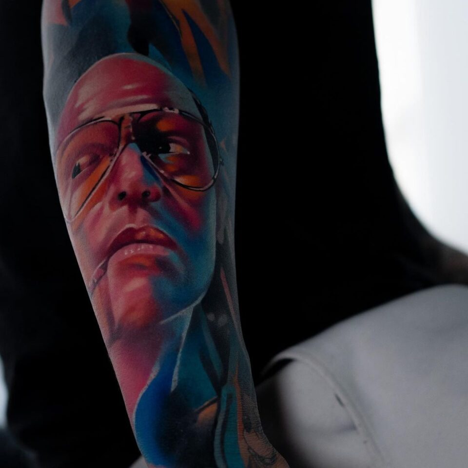 Tetování, portrét z filmů a pohádek Strach a hnus v Las Vegas na předloktí