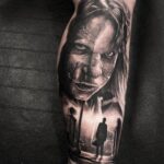 Tetování portrét z filmů a pohádek The Exorcist na lýtko