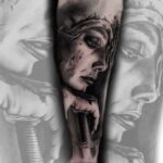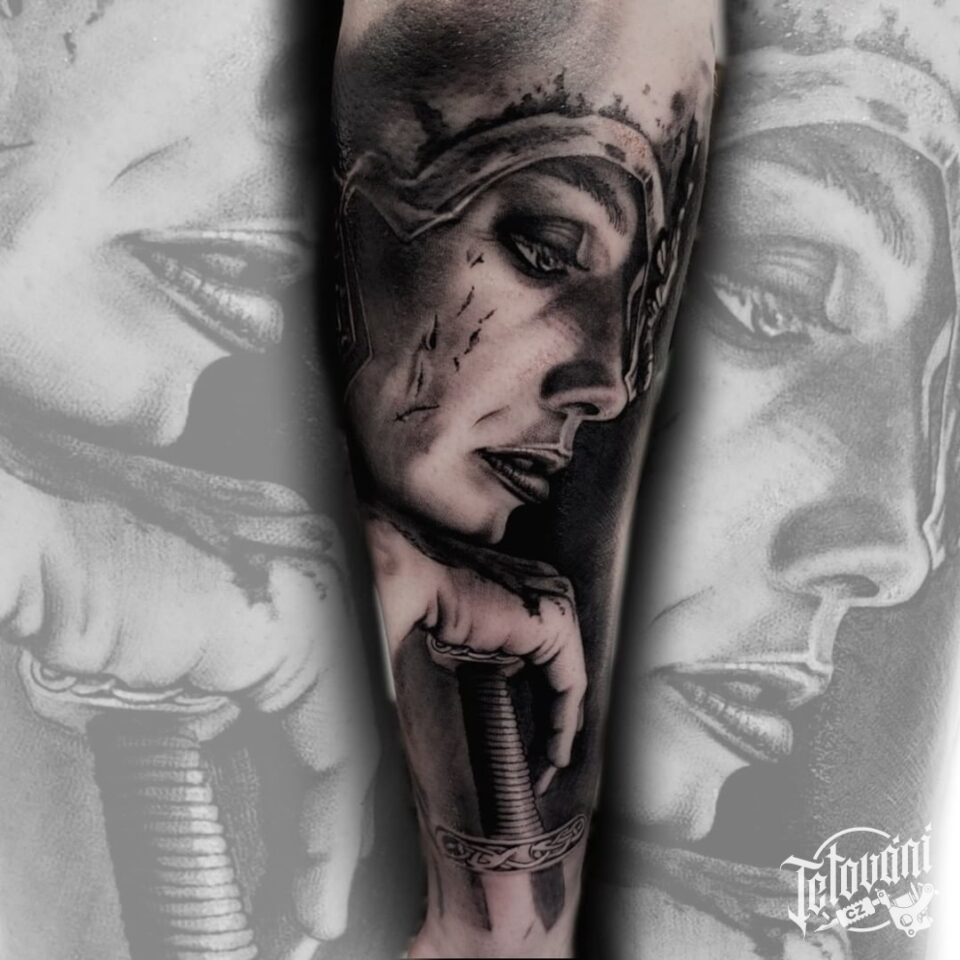 Tetování portrét žena bojovník na předloktí