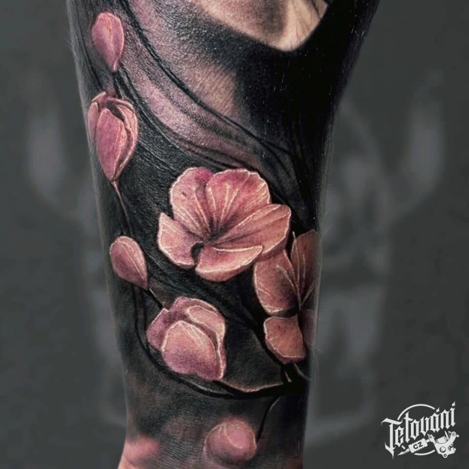 Tetování portrét, žena , květiny na předloktí