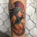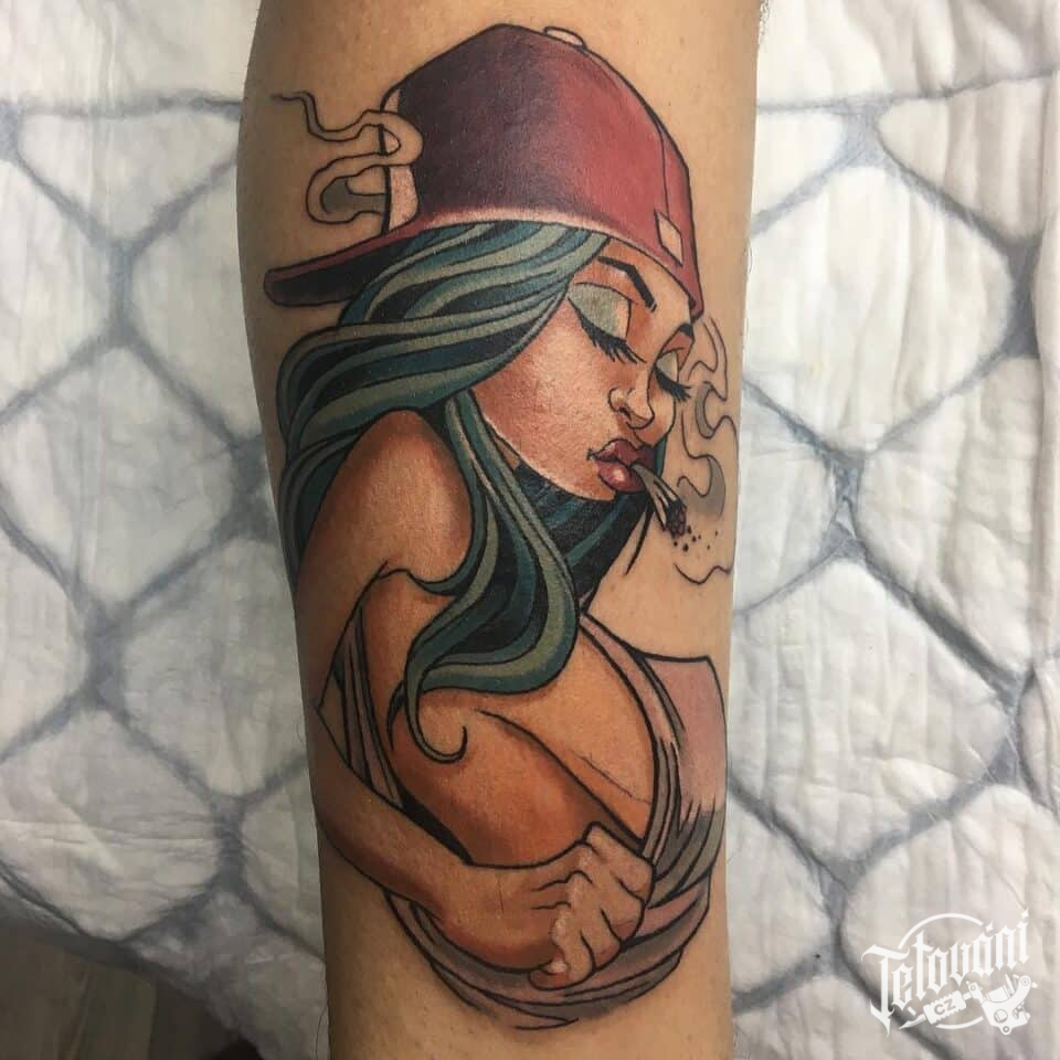 Tetování portrét žena na lýtko