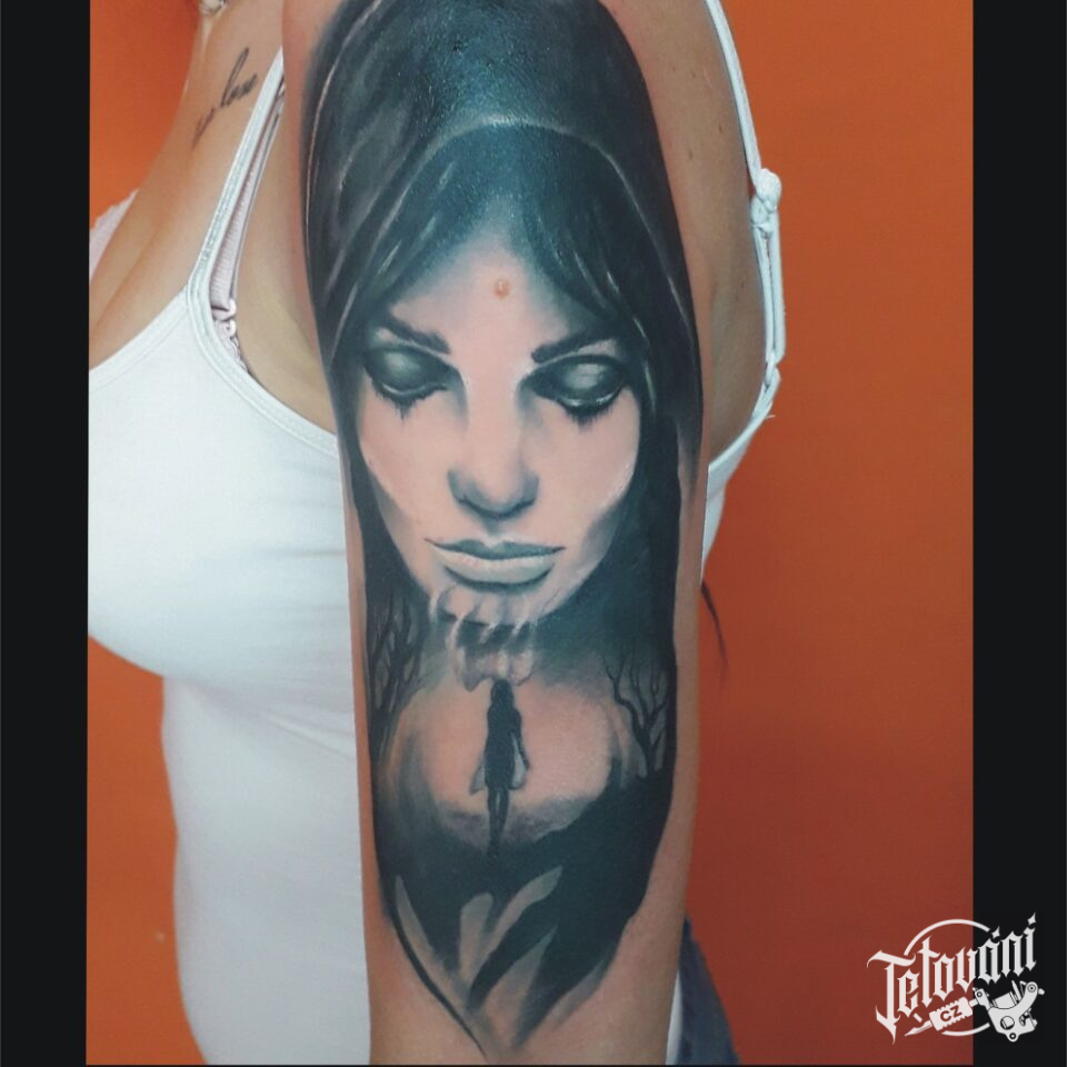 Tetování portrét žena na rameni