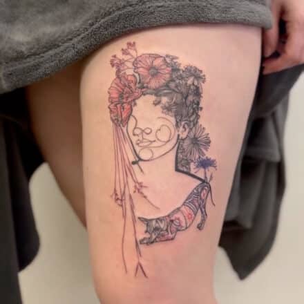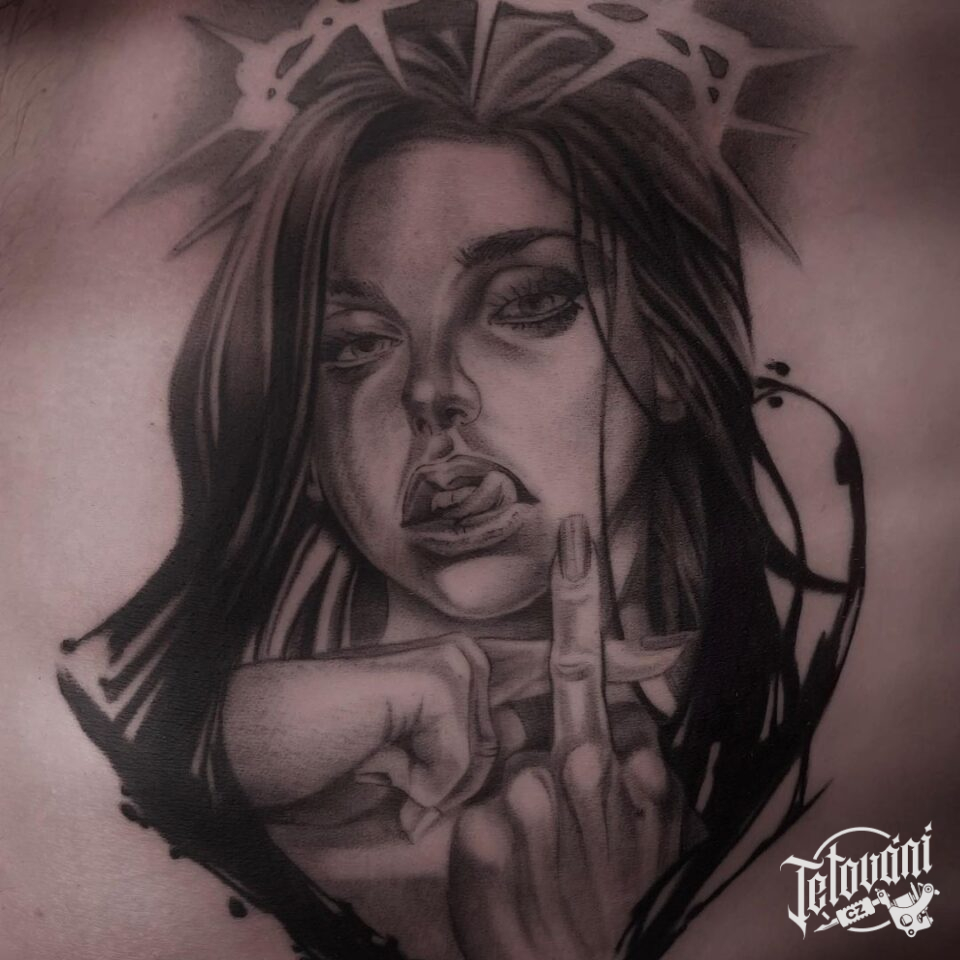 Tetování portrét žena na žebrech