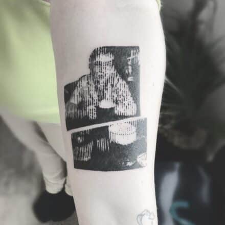 Tetování portrét, žena, oko, symboly života, znaky a symboly, tvary na předloktí