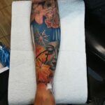 Tetování portrét ženy a květiny na předloktí