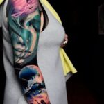 Tetování portrét ženy a příroda, rukáv