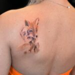 Tetování portrét ženy a zvířete, lišky na lopatce