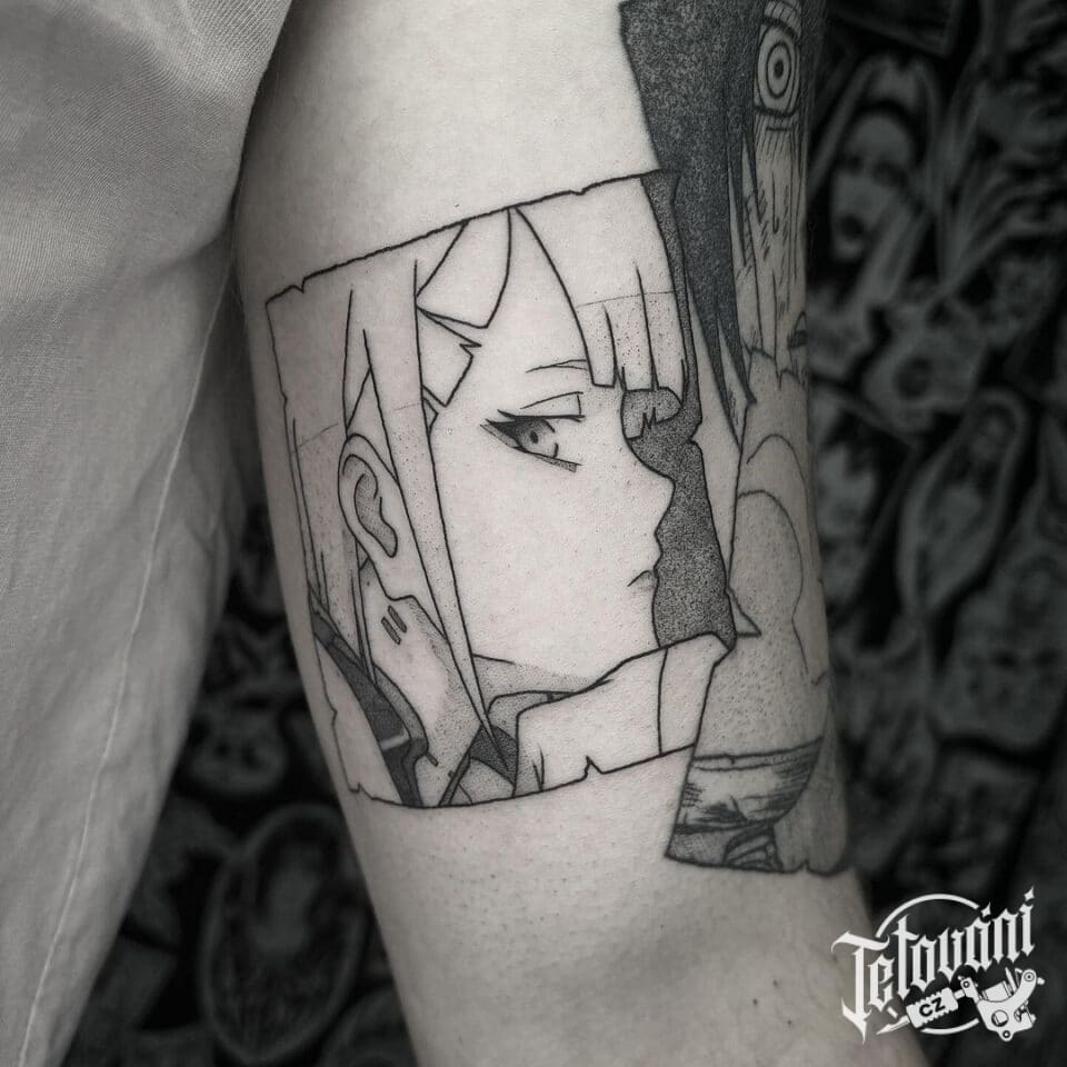 Tetování portrét ženy, anime postavičky z filmů a pohádek na paži