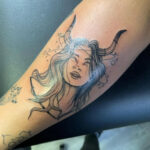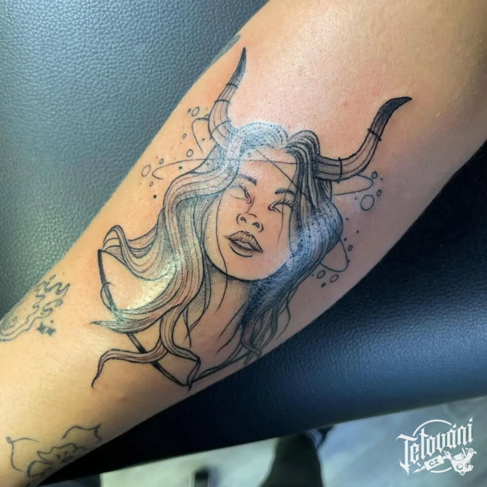 Tetování portrét ženy ďábla na předloktí