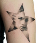 Tetování portrét ženy, hvězda na rameno