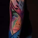 Tetování portrét ženy, květiny na předloktí