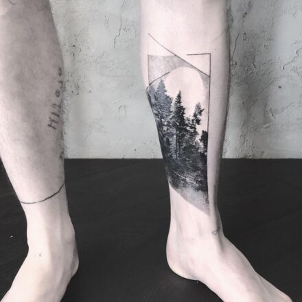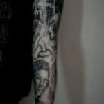 Tetování portrét ženy, lebka, symbol, příroda, les rukáv