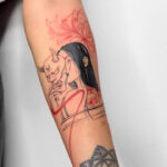 Tetování portrét ženy, maska hannya na předloktí