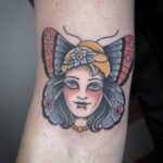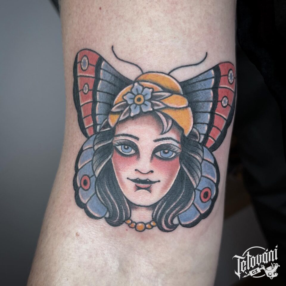 Tetování portrét ženy motýl na ruce