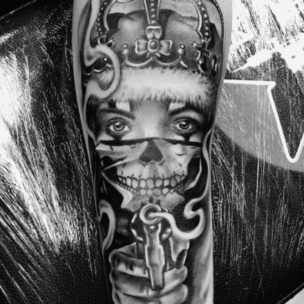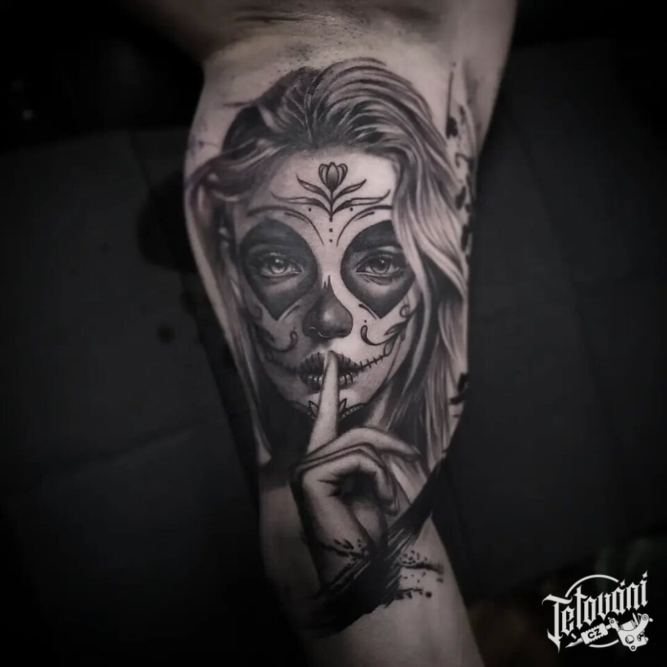 Tetování portrét ženy muerte na paži