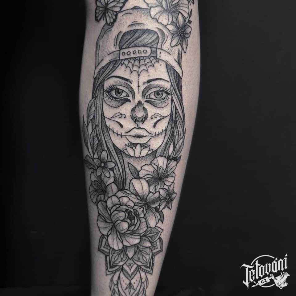Tetování portrét ženy muerte na předloktí