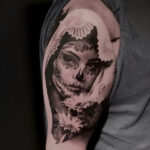 Tetování portrét ženy muerte na rameni