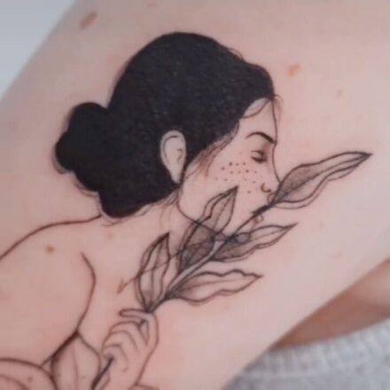Tetování portrét ženy na holeni