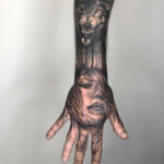 Tetování portrét ženy na hřbetu ruky