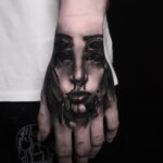 Tetování portrét ženy na hřbetu ruky