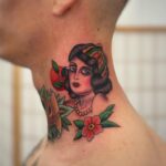 Tetování portrét ženy na krku