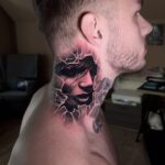Tetování portrét ženy na krku