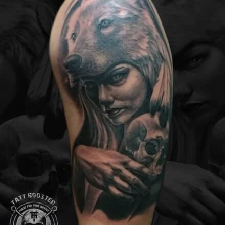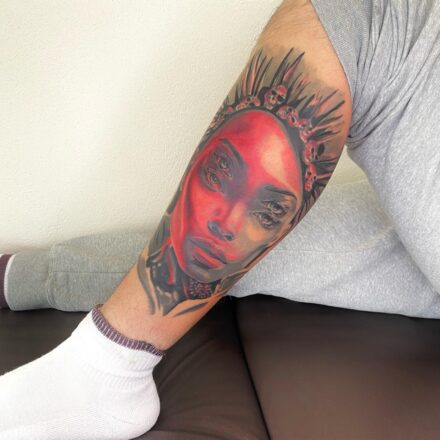 Tetování portrét ženy na paži