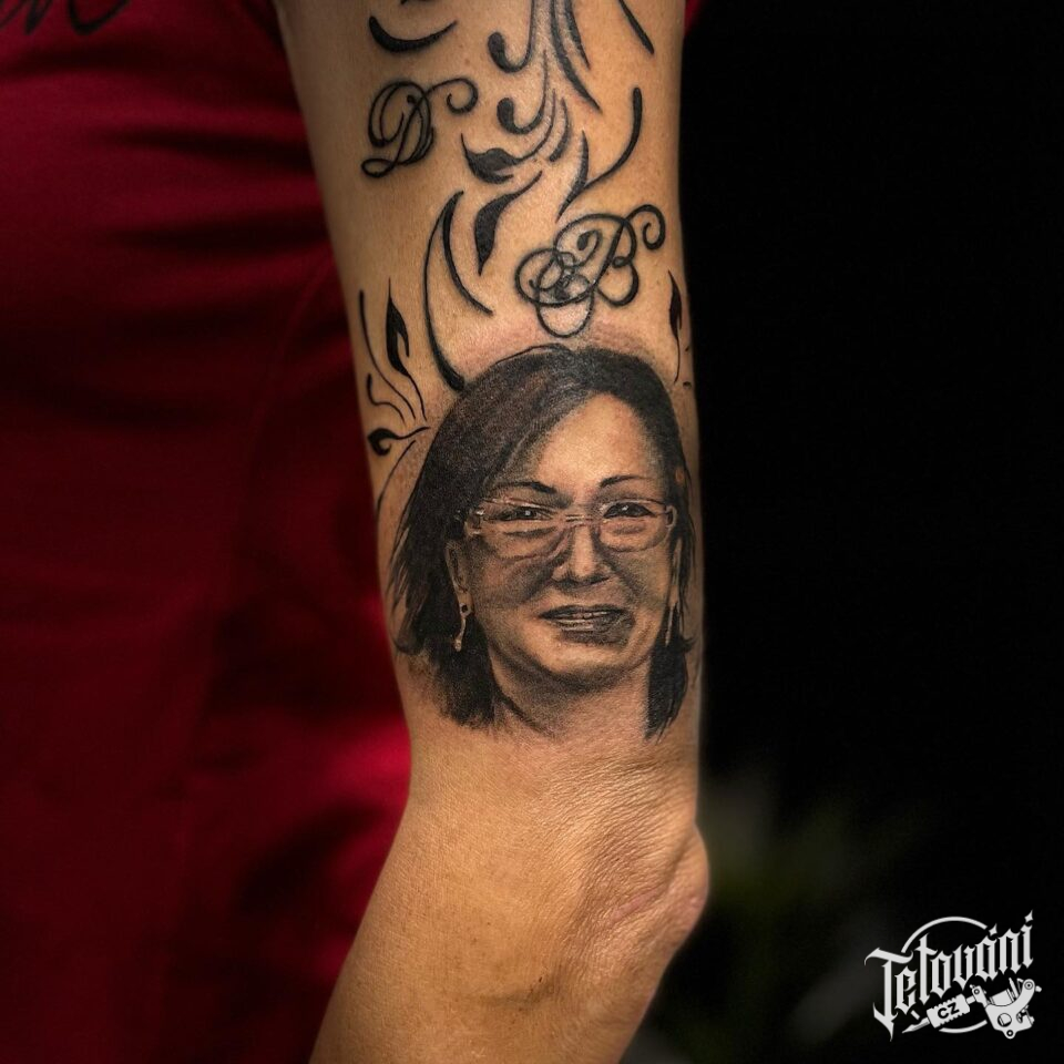 Tetování portrét ženy na paži