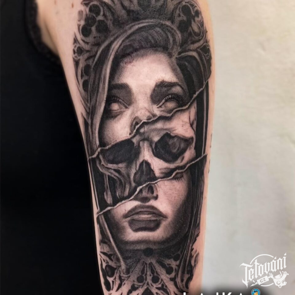 Tetování portrét ženy na paži